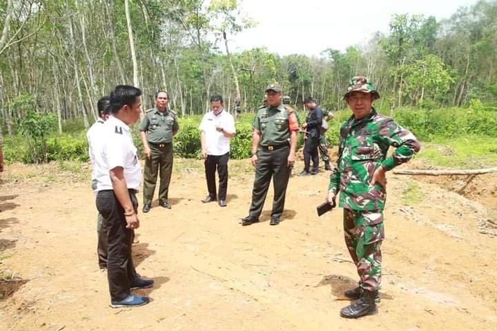 Tanjung Raya ( Mesuji ) - komandan kodim 0426 Tulang Bawang Letkol ibf Triano Iqbal, S.I.P., M.Si, di dampingi WS Pasi Ter Kapten Inf Sutio meninjau lokasi Karya Bakti TNI AD Tahun 2023, di Desa Brabasan Kecamatan Tanjung Raya Mesuji, Rabu 25 Januari 2023.