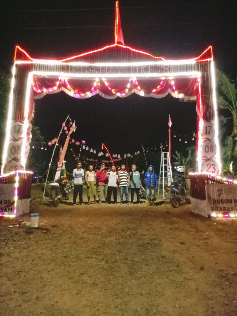 BRABASAN-Warga masyarakat Desa Brabasan, senantiasa antusias menyambut sekaligus memperingati dan memeriahkan HUT (Hari Ulang Tahun) Kemerdekaan RI, termasuk pada peringatan HUT Ke 78 Kemerdekaan RI Tahun 2023. Buktinya sejak memasuki bulan Agustus 2023, warga masyarakat Desa Brabasan menyelenggarakan berbagai kegiatan, dalam rangka menyambut sekaligus memperingati dan memeriahkan HUT Ke 78 Kemerdekaan RI, 17 Agustus 2023. Diantaranya menyelenggarakan gerakan kebersihan, mengecat pagar dan patok mini, memasang bendera merah putih, umbul-umbul, membuat gapura, memasang lampu hias dan ornamen lainnya, menggunakan warna merah-putih.
